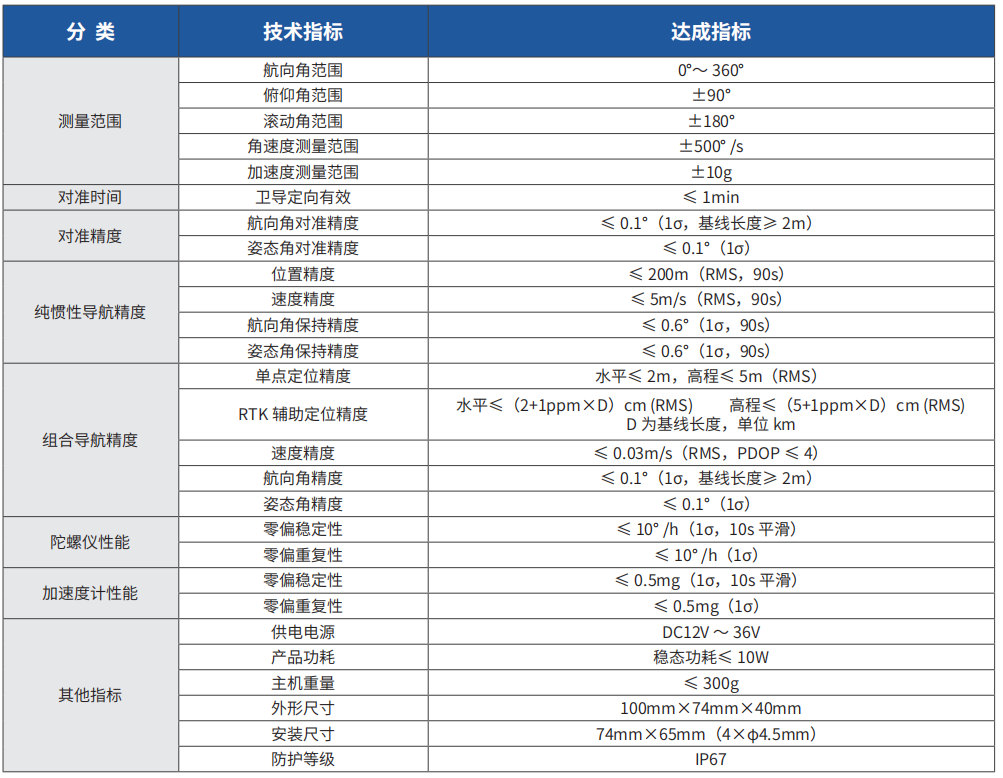 姿态角精度(1σ):≤0.1°