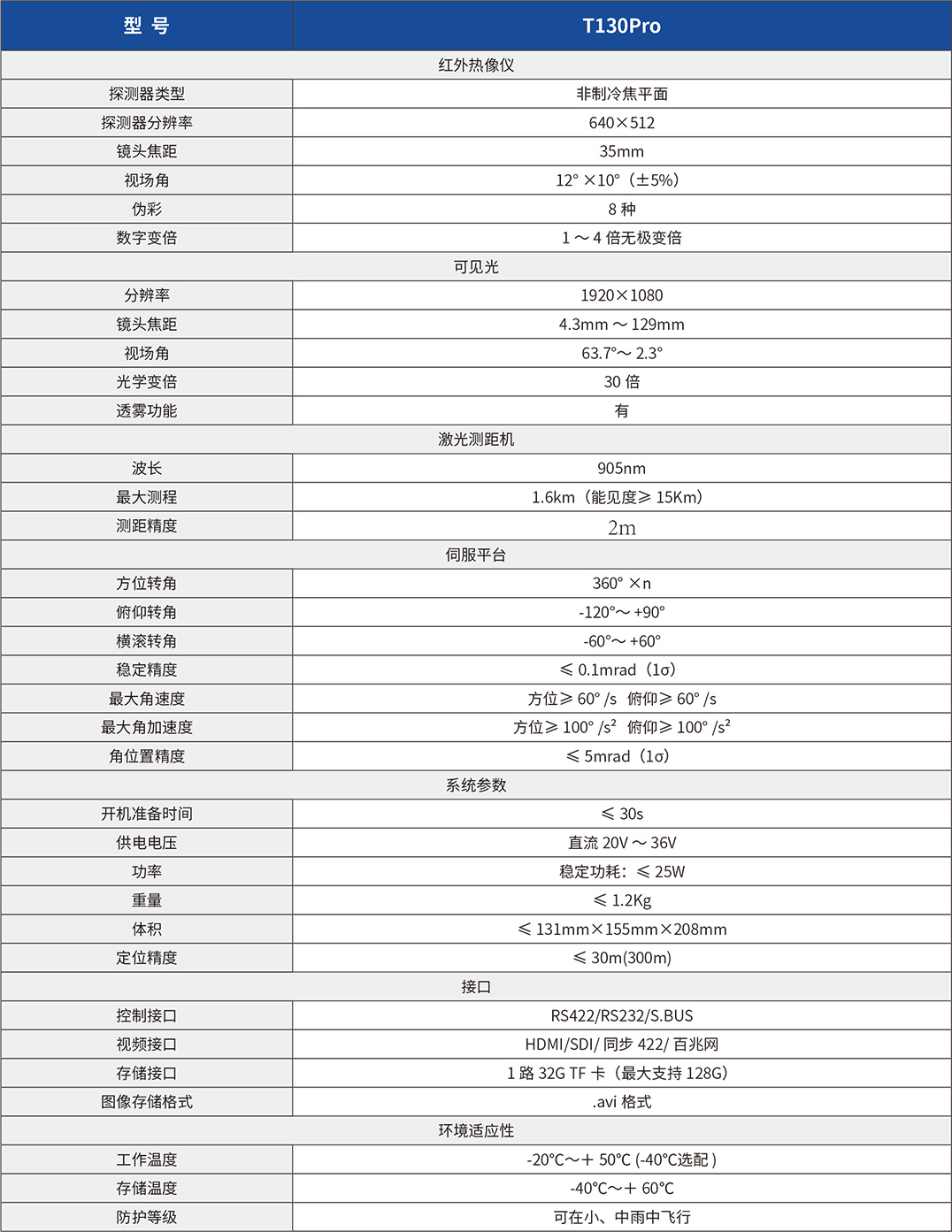 · 采用高精度IMU设计,保证图像稳定的同时,亦具备更高的工作可靠性,保证关键时刻图像的可靠采集;